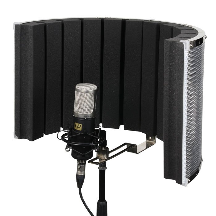 Das Reflexionsfilter LD Systems RF1 dient der Unterdrückung von unerwünschten Schallreflexionen, Nebengeräuschen, Raumhall und Echo, um eine möglichst "trockene" Aufnahme von Gesang/Sprache oder Instrumenten zu erzielen - für gute Aufnahmeergebnisse auch unter ungünstigen Umgebungsbedingungen ohne aufwendigen Studioausbau und akustische Dämmmaßnahmen. Die leichte, aber robuste Konstruktion mit hochwertigen Schallschutzmaterialien eignet sich zur Befestigung an allen handelsüblichen Mikrofonstativen.